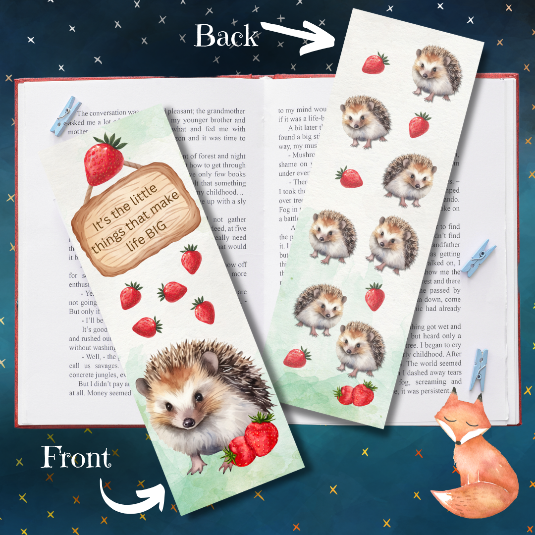 Add a touch of whimsy to your reading with our hedgehog watercolour bookmark. Never lose your place again with this adorable and unique accessory. Perfect for book lovers and hedgehog enthusiasts alike.